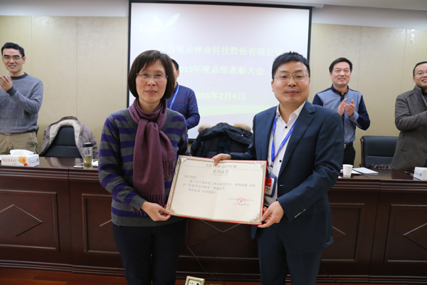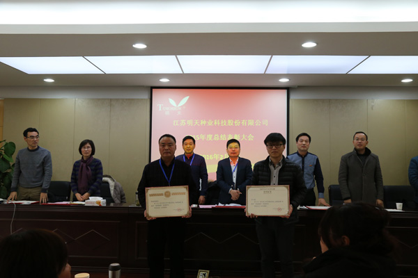 2016年2月4日,江蘇明天種業(yè)“2015年度總結(jié)表彰大會”在院糧食所會議室舉行了,公司全體員工及淮安明天經(jīng)理層參加了本次會議。
