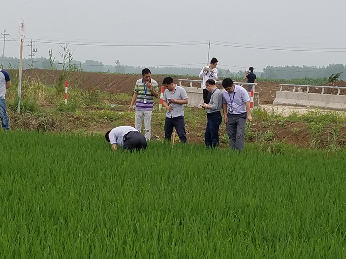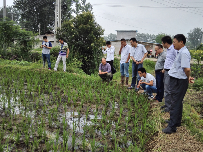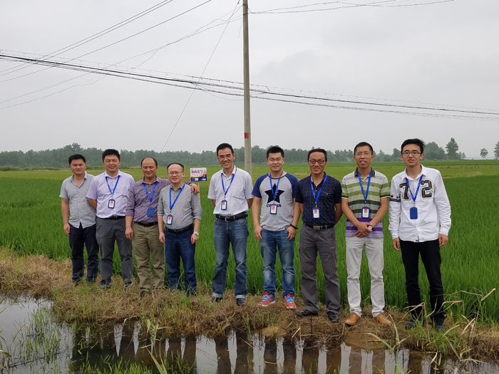 2016年6月28日,蔣銀濤總助、楊海波經理帶領雜交水稻部全體人員前往盱眙縣參觀深兩優862與和兩優713示范田,并且和盱眙縣經銷商喬澤華交流新品種推廣的經驗。