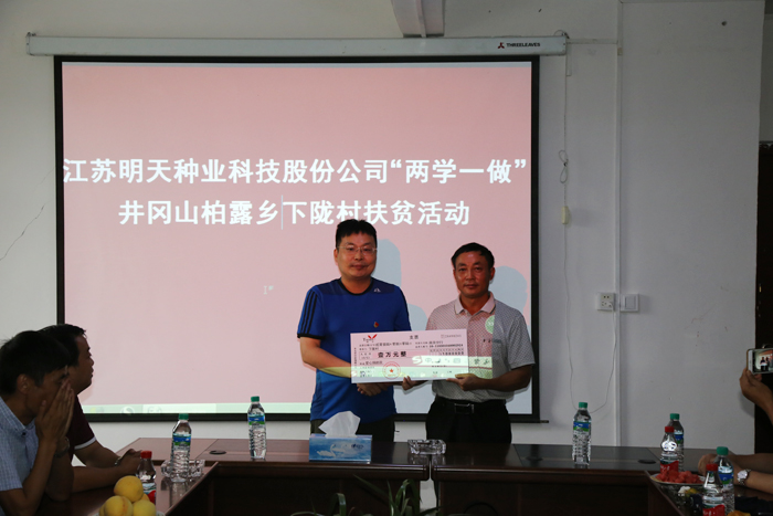 本次活動公司還對革命老區進行了愛心捐助,由江蘇省農業行政執法總隊大隊長、江西省吉安市市長助理鄒芳剛牽頭,對江西省省級“十三五”規劃扶持貧困村之一的井岡山市柏露鄉下隴村的貧困戶進行了愛心捐助,“明天種業的發展離不開社會各界的支持,履行社會責任是企業的應盡義務” 公司黨支部書記、總經理嚴輝民在儀式說到,“尤其要加大對我們的革命老區的支持力度,明天種業將結合自身產業特點,探尋精準扶貧道路,努力為革命老區建設貢獻一份力量。”