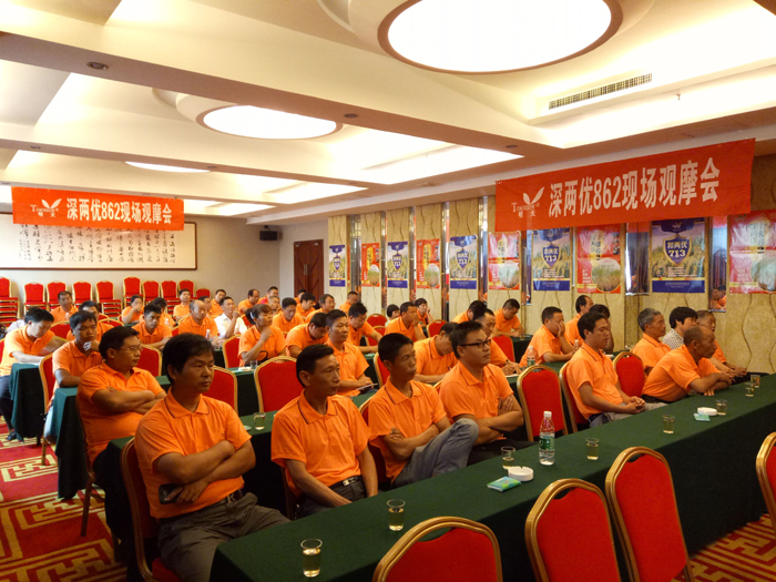 之后,丁經(jīng)理深詳細(xì)介紹了深兩優(yōu)862的特征特性,并向經(jīng)銷商分享了深兩優(yōu)862在岳陽、常德、衡陽、株洲、湘潭等多個(gè)地區(qū)的田間表現(xiàn),同時(shí)公布了深兩優(yōu)862在湖南的基本銷售政策,最后展示了公司后續(xù)品種--和兩優(yōu)713。為了讓經(jīng)銷商深入了解深兩優(yōu)862,我們邀請(qǐng)了示范片負(fù)責(zé)人,高級(jí)農(nóng)藝師肖利民為與會(huì)人員詳細(xì)講解了深兩優(yōu)862的種植方案。公司總經(jīng)理助理蔣銀濤向與會(huì)經(jīng)銷商就雜交水稻部發(fā)展歷程、育種家育種方向、公司戰(zhàn)略布局、種業(yè)營銷現(xiàn)狀等方面進(jìn)行了闡述,并表示我們將與和我們一起前行的經(jīng)銷商共創(chuàng)輝煌。會(huì)議最后經(jīng)銷商代表,洞口縣植物保健醫(yī)院老總劉會(huì)東表示明年深兩優(yōu)862一定會(huì)大賣!