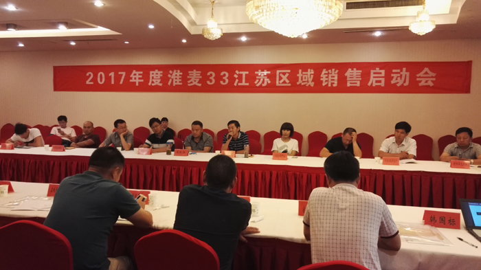 7月8日-9日,2017年度淮麥33江蘇銷售啟動會在江蘇沭陽順利召開。本次會議由蘇北片區各縣代理商參加,會議議題包括市場形勢分析、銷售政策、市場管控、二維碼技術培訓、經銷商研討等,會議由常規稻麥部副部長韓國標主持。