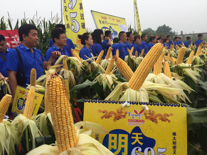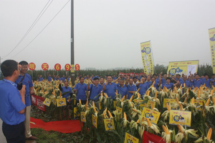 2017年7月29-30日,江蘇明天種業在山東省章丘市組織召開“明天695”山東省級現場觀摩會暨銷售啟動會。“明天695”是江蘇明天種業自主選育的矮桿大穗、抗病耐高溫、優質高產玉米新品種。也是江蘇明天種業進入山東市場第一個玉米品種。通過此次會議的召開,讓來自山東省70多個縣市經銷商到“明天695”玉米展示田進行觀摩和考察。今年7月份前期高溫,后期連續陰雨大風天氣,導致很多地區的玉米田出現倒伏和授粉不良現象,而“明天695”田間沒有一塊倒伏現象,沒有出現高溫熱害現象,結實率很高,同時,田間幾乎看不到任何病害發生。通過田間觀摩,“明天695”以優異表現,得到了經銷商們一致認可。 30日上午室內會議,江蘇明天種業總經理助理孔志榮先生對江蘇明天種業整體情況進行了介紹,并做“江蘇明天種業雜交玉米產業前期發展情況和中長期戰略規劃”主旨報告。讓山東省各縣經銷商對江蘇明天種業有了充分了解,對與江蘇明天種業合作推廣“明天695”充滿信心。公司雜交玉米事業部副經理吳東德針對“明天695”的特征特性和山東各地區示范田表現情況進行了介紹。隨后,通過山東省經銷商代表們的發言可以看出,“明天695”在各區域春、夏播表現十分搶眼,大多經銷商都把“明天695”與當地主栽品種進行了對比種植,通過對比發現,“明天695”在抗倒性、耐高溫能力、抗病性等等方面表現較為突出。