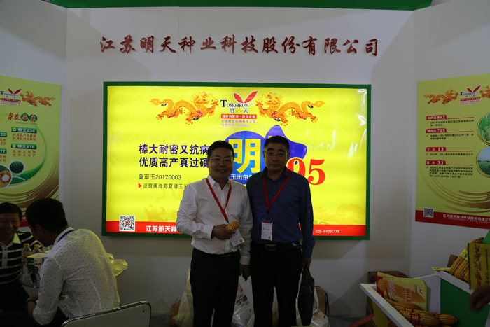 明天種業(yè)在本次“雙交會”上展示了明天695、明科玉77、明科玉33等多個玉米新品種,受到了廣泛關注和好評。同時,在商河展示田中,明天種業(yè)明科玉77被農業(yè)部專家組評為“明星品種”,明天695、明天636被評為“優(yōu)秀品種”。展會期間,農業(yè)部種子管理局局長張延秋、中國種子協會副會長兼秘書長蔣協新、中國種子協會顧問組組長李立秋、北京農林科學院玉米研究中心主任趙久然等領導、專家巡視了明天種業(yè)展位,聽取匯報,對明天種業(yè)展示的玉米新品種給予肯定,并予以指導。
