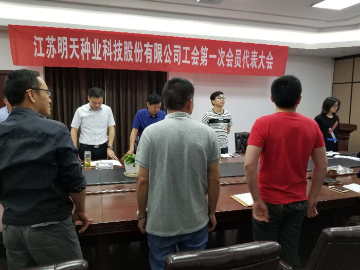 5月3日下午,江蘇明天種業(yè)科技股份有限公司第一屆工會代表大會第一次全體會議在公司會議室順利召開。會議由楊地龍副總經(jīng)理主持,工會代表王曉軍、王平等29人參加會議,黨支部組織委員、公司副總經(jīng)理胡玉成列席會議。