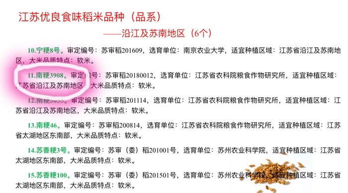 2.優(yōu)質(zhì)食味早熟晚粳新品種“南粳3908”獲稱(chēng)“江蘇優(yōu)良食味稻米品種”。