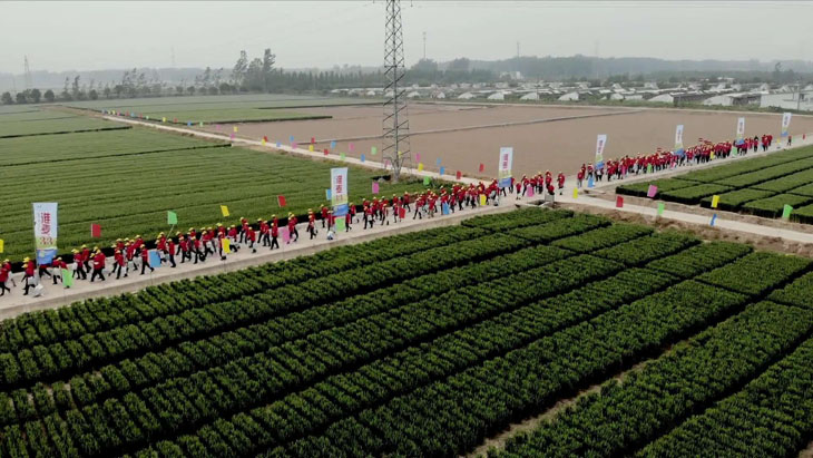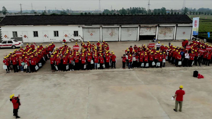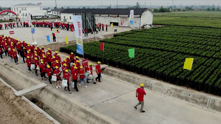 第三部分在所有觀摩環節結束后,所有參會人員以縣為單位集中在睢寧育種基地發曬場上,排成縱隊高喊“要想糧食堆成山,就種淮麥33”的口號。
