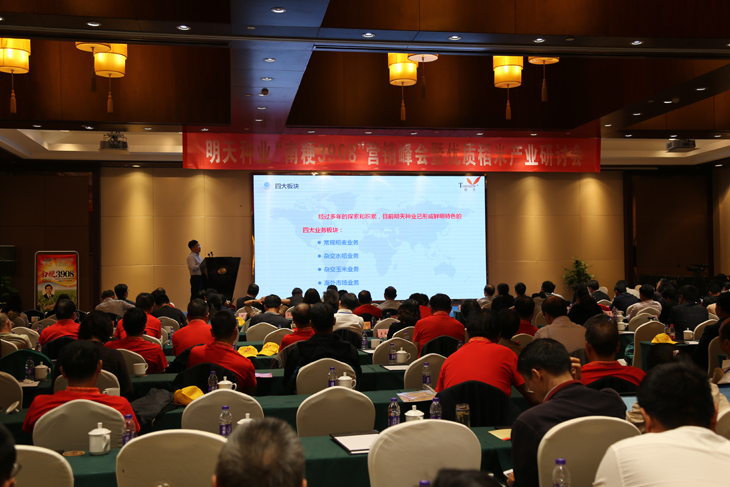 金秋十月,秋風送爽,種植“南粳3908”的田間稻香四溢,沉甸甸的稻穗隨風起伏,一片豐收在望的喜人景象。10月15~16日,我公司好味稻米新品種“南粳3908”營銷峰會暨優質稻米產業研討會在丹陽召開。會議邀請了中國種子協會副會長鄧光聯、江蘇省農科院副院長劉賢金、江蘇種業協會會長張堅勇、江蘇省農技推廣站站長管永祥、江蘇省農技推廣站副站長楊洪建、江蘇省種子站副站長陳國斌、丹陽市副市長王強、江蘇省著名水稻育種家王才林研究員等領導專家出席。來自江蘇、安徽各地的種子經銷商、種植大戶和稻米加工企業代表等200余人濟濟一堂,甚是熱鬧。
