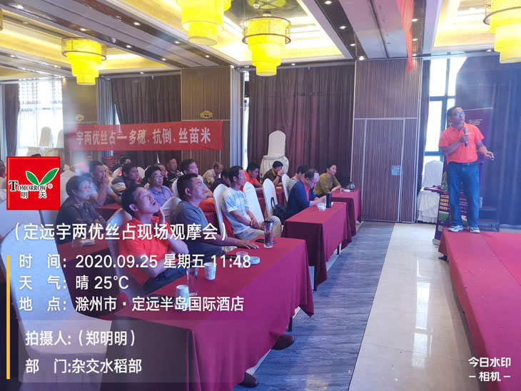 秋高氣爽,天公作美,9月24日-25日,2020年度江蘇明天種業(yè)科技股份有限公司“宇兩優(yōu)絲占”安徽省現(xiàn)場觀摩會在安徽定遠(yuǎn)成功召開,公司總經(jīng)理助理?xiàng)詈2ǎs交水稻部副經(jīng)理丁震、定遠(yuǎn)縣總代理鄭守健以及安徽省其他各縣代理商相聚在總理故鄉(xiāng)定遠(yuǎn),共同見證宇兩優(yōu)絲占在大田的優(yōu)異表現(xiàn)。
