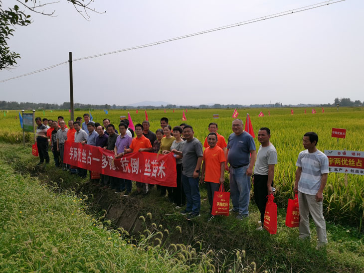 9月25日上午,公司安排大巴車帶著與會伙伴前往定遠(yuǎn)縣池河鎮(zhèn)農(nóng)委機(jī)插秧示范田。涼意叩開秋日的美好,相伴迎來收獲的季節(jié),在陣陣微風(fēng)的吹拂下,各合作伙伴陸續(xù)走向田間,仔細(xì)了解宇兩優(yōu)絲占在大田的分蘗、結(jié)實(shí)率,抗倒性等特性,驚嘆聲不絕于耳,捻開稻谷后,米質(zhì)晶瑩剔透,再次獲得了與會伙伴的一致認(rèn)可。