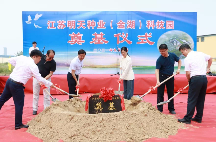 9月10日上午,江蘇明天種業(金湖)科技園在金湖縣奠基儀式舉行。省農業農村廳二級巡視員俞衛東、縣長萬旭東、省種子站二級調研員陳國斌、副縣長朱亞、明天種業總經理嚴輝民等出席儀式,共同為項目培土奠基。
