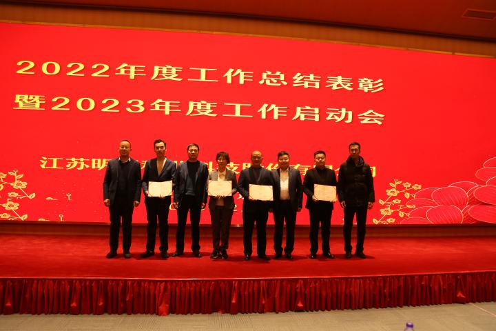 大會第二項議程由公司副總經理王波宣讀關于2022年度先進表彰的決定,由師洪飛、徐江等公司領導宣讀先進集體、杰出管理者、優秀管理者、先進個人先進事跡。
