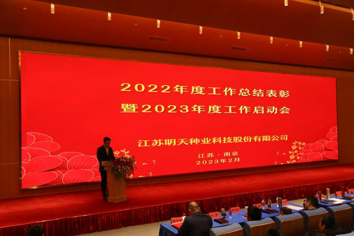 嚴總在工作報告中指出2022年是明天種業不平凡的一年,在面對新冠疫情、市場競爭日趨激烈的嚴峻形勢,公司領導班子同心同德、精心組織;各級管理人員積極響應、主動作為;一線員工愛崗敬業、工作勤奮;全體員工齊努力,共克難,經受住了考驗。公司各項事業穩步推進,成果豐碩。2022年銷售和利潤取得新的雙突破,實現四連增;公司被農業農村部列入“國家種業陣型企業”和再次被認定為“中國種業信用骨干企業”,綜合排名第11位;“制種大縣+龍頭企業”項目順利實施,金湖產業園建設基本完成。2023年是公司第一個五年規劃實施的關鍵第四年,全面完成全年的工作目標任務對明天種業未來的發展意義深遠。公司將全面貫徹落實黨的二十大精神,全面落實“以國內市場為主體,創新升級實現跨越,以國外市場為突破,積聚資源,注重實效”的戰略部署,以“搶抓種業振興機遇,拼出更加美好明天”為行動綱領,超前謀劃、統籌管理、積極落實,確保2023年經營目標任務的實現。